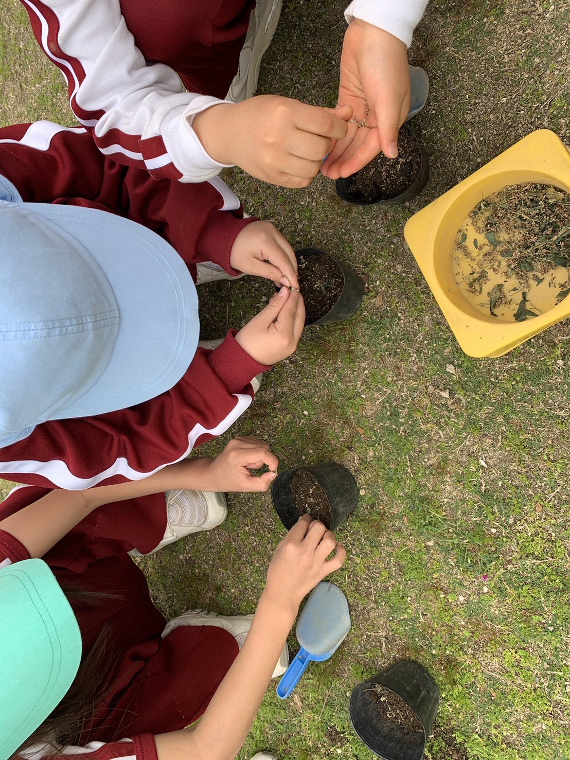 年長さんに進級して、桜の花が散ったころに『藍』(あい)の種を播きました。