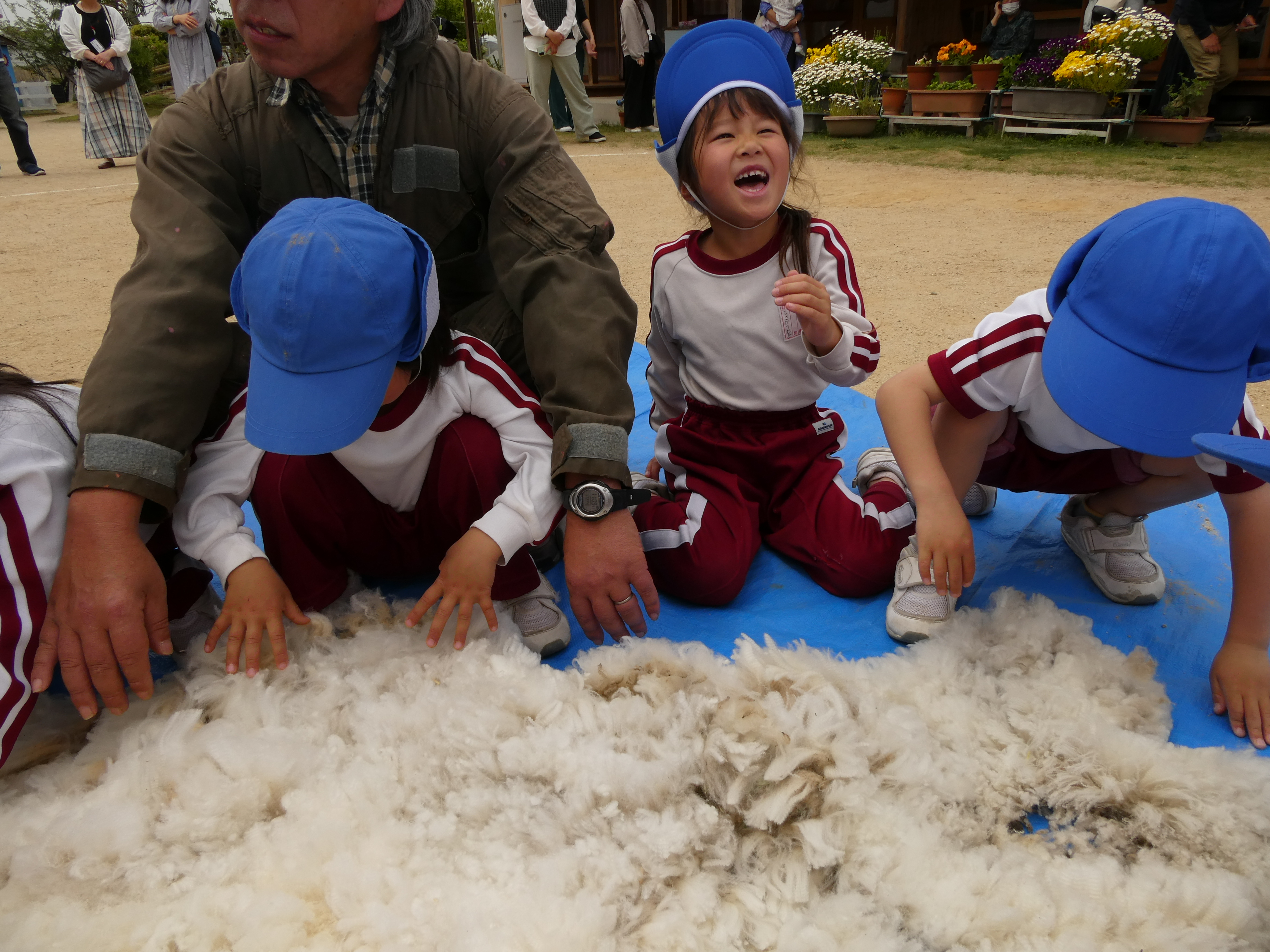 身近な環境の中で、匂いを嗅いだり、触ったり、子どもたちは羊や自然の恵みを身近に感じることが出来ます。