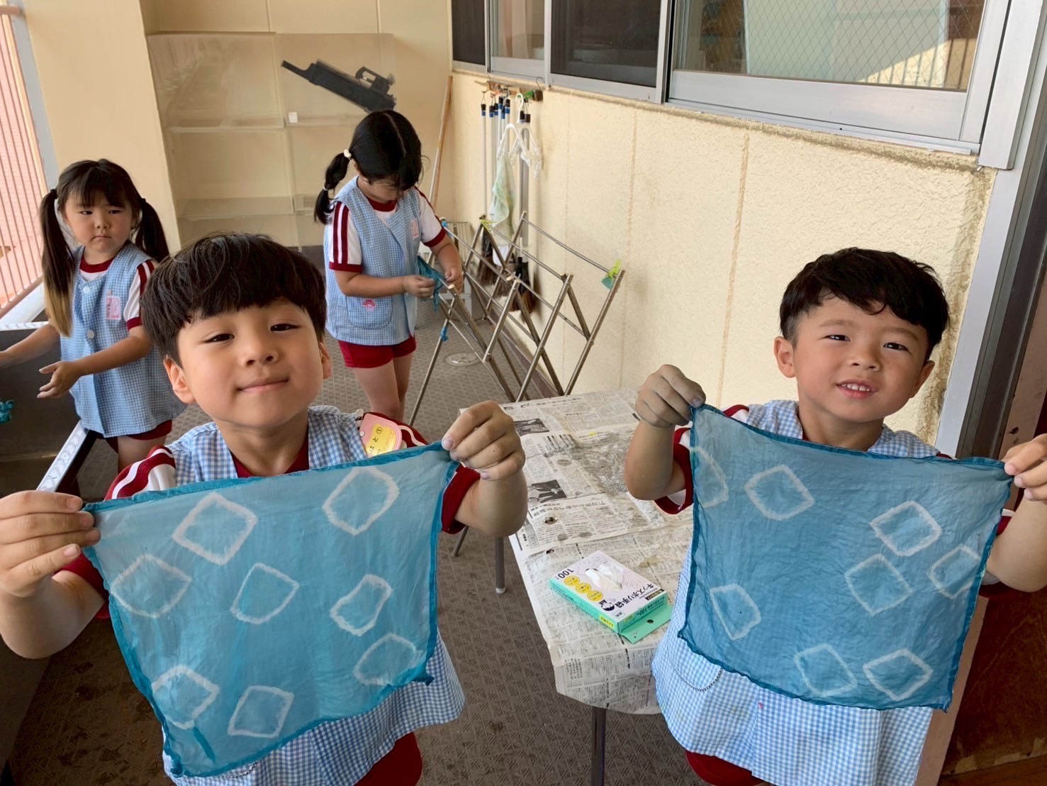 素敵なハンカチが出来ました。お空のように青い色が生まれたね。